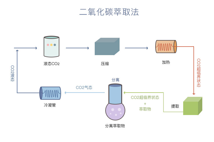 二氧化碳萃取法又叫做“超临界萃取法”,主要通过二氧化碳液态与气态的相互转换提炼精油。