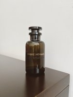 试了以后发现nouveau monde和ombre nomade相比真是清汤寡水。同样是玫瑰乌木,ombre nomade强多了,而且甜度也恰到好处。很好穿也很有个性的玫瑰乌木,比dior的oud ispahan更厚重,玫瑰没那么甜。于是过了一会会就决定要买下来,但还没从lv店里的两楼走到底楼,我突然闻不到这个味道了。我贴着皮肤闻,但一点味道也没有。当时店员已经开始帮我包其他东西,香水还没拿出来,我当机立断说我不要那瓶香水了。店员很慷慨地给了两个小样连同当天的香卡让我回去慢慢试。