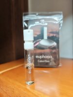 这是款令人沉醉的东方调香氛,一款能衬托出异国果香味、诱惑的花卉味以及馥郁的奶香味之间对比的全新香氛。香氛前调带出了能蛊惑感官的石榴味、多汁的柿子味以及繁泌的青翠绿味。透过馥郁的紫兰花味、清新的莲花味以及感官的白兰花,euphoria的中调传递出神秘以及令人兴奋的感觉。香氛的后调具有香味持久的特征,是由性感的水琥珀味、桃花心木味与吸引人的紫罗兰花味、感官的麝香味与令人上瘾的乳脂香味所搭配出来。瓶身设计由Calvin Klein与设计大师Fabien Barbon一起合作,将香水构思成感官享受上的现代化诠释 ─ 谀媚、性感、优雅而与生俱来的。瓶身的弧度就像是融于掌心的光滑曲线一般,某种程度上来说,相当具有感官及流线感。光滑的瓶身曲线与奢华的抛光结构,无异是一种精致典雅的表达。透过清澈玻璃的曲弧面,紫水晶色泽的香水是如此显而易见。玻璃是由一层贝壳状的抛光铝金属所包围住。长方状的银灰色瓶盖是有着Calvin Klein标志的特点。 瓶身则是由深酒红色的缎面抛光华丽纸盒所包装着。得奖:FiFi Awards 香水奥斯卡年度女香之星。