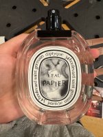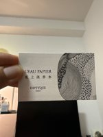 - 小样入手。蒂普提克的新香LEau Papier前几天开始在大陆地区发售了,到太古汇尝个鲜,领了个试用装闻闻看。说是试用装,还真的是很试用,0.3ml按了2下就没了,连2ml试管都不舍得派发,Dip看来最近过得有点苦。
