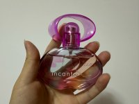 - 这个是第一瓶属于我自己的香水,20岁买的,无论如何我也会给它打五星。选它最直接的原因是因为瓶子好看,那天菲拉格慕在静安寺对面的久光百货门口摆了展台,正方形的纸盒堆成了一个造型,冰激凌色的包装,闪闪发光的瓶子,真的很难让人移步。其实菲拉格慕incanto系列基本都是甜甜的少女花果香,就是20岁左右的味道,目标受众定位很明确哈哈哈。这是一个我有点熟悉又很不一样的味道,非常符合我20岁时对香水的认知。我当时真的觉得这瓶和我妈的那瓶迪奥真我有点像,但不是花香,是年轻的甜味,前调有很明显的菠萝和百香果这种热带水果的味道,很活泼,菠萝味也很特别。可能是因为迪奥真我给我留下了先入为主的印象,所以我对于这瓶的接受度就非常高,闻到了,就想要了。我还跟我妈说,我好喜欢这个菠萝味。然后是兰花和桃花的混合花香,淡淡的,混一点甜。基调其实闻不出来,留香时间没那么长,但我强烈怀疑或许就是因为这瓶隐藏其中的木质基调和琥珀让我后来对美食调和木质调极其着迷。琥珀总是能给人一种温暖的感觉,当所有的香味散去之后,留下的琥珀似乎是带着温度的体香。