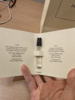 前调梨子味带着清淡的甜 我个人会闻到轻微熏人的醉 然后小苍兰的味道优雅迷人 慢慢进入 两者交织却又独立 广藿香 琥珀带来更多的安心