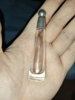 中段百合很浓郁,等到偏后一点百合稍微减弱时,水生的西瓜味又出来了。貌似除了中间浓郁的百合之外,其他我都蛮能接受的。很赞同前面的一篇香评所说的,大多数香水对水生花香调的理解仅仅停留在温柔的甜味却缺乏流动性,L'Eau d'Issey同样。说实话,甜花香的水生调很容易晕,当然,这得看个人喜好~