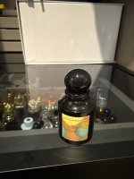 上身第一印象是浓厚的木质气味,类似于克什米尔木、乌木类的暖调木头,而后整体走向偏细腻脂粉。遗憾的是,在我身上会产生强烈的孜然大料一类的腥臊气,贴近皮肤后感受强烈。三次涂抹试香后,中调的气味反映都是如,4小时后的基调气味反映像对会更加柔和好接受些。整体气味还是以麝香、木质气味为主,不知道期间的脂粉感从何而来,但是此种脂粉气让这支紫茉莉有些落入俗套了,整体试下来除了触及雷区的中调表现,其余的部分也没有觉得很出色。