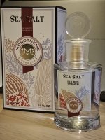 - 前调是淡淡的海盐味,咸咸的,就好像闻到不远处一百米到几十米开外的海水一样,中间有一点草木的香气——那是你在树林里,还有一点皂感——那是你身上的味道,总之,你要到海边去。