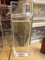 - 前调可能因为紫丁香的脂粉、粉红胡椒的香甜辛料味和一丁点芦苇荡的水汽,让人觉得甜的发闷,薄荷和橘子稍微带来点清爽,但作用不大,所以可能有人会晕,会觉得湿漉漉,氤氲着水汽,含糊不清;中调开始,莲花桃子来了,慢慢才有点清冽的感觉,让人总算能透口气;后调一些强势的味道没了,剩下莲花和雪松和一点点的香草,整个味道就很舒服很通透,可惜留香实在不长,等来了我最喜欢的后调,却隐隐约约抓不住,说没就没。晕水生调的人可能会浑身难受。