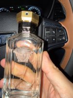 先来提提外观吧,这种外观和范家大部分略显浮夸的香水瓶设计是有着很大差异的,简洁透明的瓶身,中间象征性的加入了熟悉的“美杜莎”,上面的喷头设计的很想古罗马时代的酒器,简洁又不失内涵,个人认为和詹尼老爷子向来浮华的作风是搭不上边儿的,从外观来看,我觉得这是范家最简洁的一次设计了……
