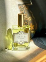 L'Ile au Thé灵感来自韩国济州岛的空气与火山岛,Camille Goutal与Isabelle Doyen前往寻找香水原材料时,对当地火山熔岩地带生长的嫩绿萌芽感到一种原始的正能量,于是在香水中加入味道清新的绿茶及柑橘味。