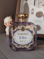 同时对比紫标,感觉鸢尾的占比要突出很多,尤其是前中调。即便到了中调,花香和鸢尾的比例也是五五开。而且这支鸢尾处理的也很有特色,它更多呈现出一种雨后花园植物的新鲜绿色和水润感,有一种豆腥气,粉质和土壤感倒并不是很重,搭配同样水润的木兰和茉莉花香还挺有意思。