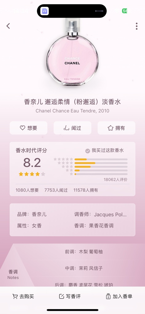香奈儿 邂逅柔情(粉邂逅)淡香水 Chanel Chance Eau Tendre, 2010