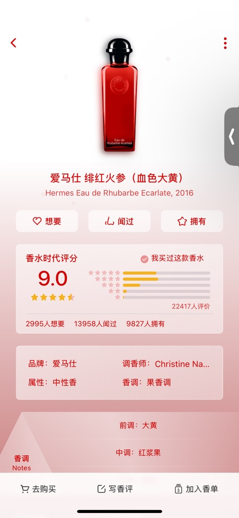 爱马仕 绯红火参(血色大黄) Hermes Eau de Rhubarbe Ecarlate, 2016