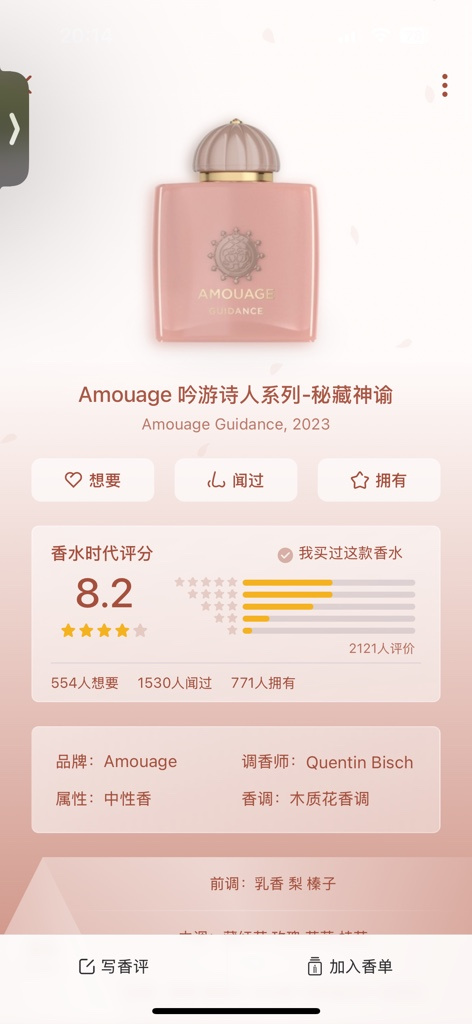Amouage 吟游诗人系列-秘藏神谕 Amouage Guidance, 2023